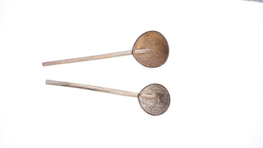 CAMCALL Natural Hand Made Coconut Shell Ladles Set of Two Wooden Spoon for Kitchen, Dining Table for Cooking and Serving