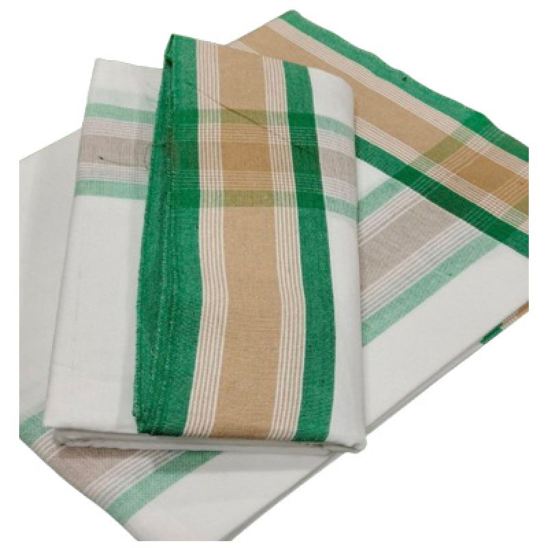 Mens Cotton Handloom Dhoti Handloom Style Stripes With Stitched Edges Mundu green