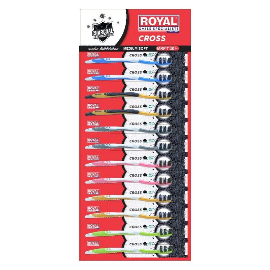 Smile Specialist Cross Charcoal Toothbrush With Medium Soft Bristles | Antibacterial with Compact Brush Head for Deep and Complete Oral Care (Pack of 12)