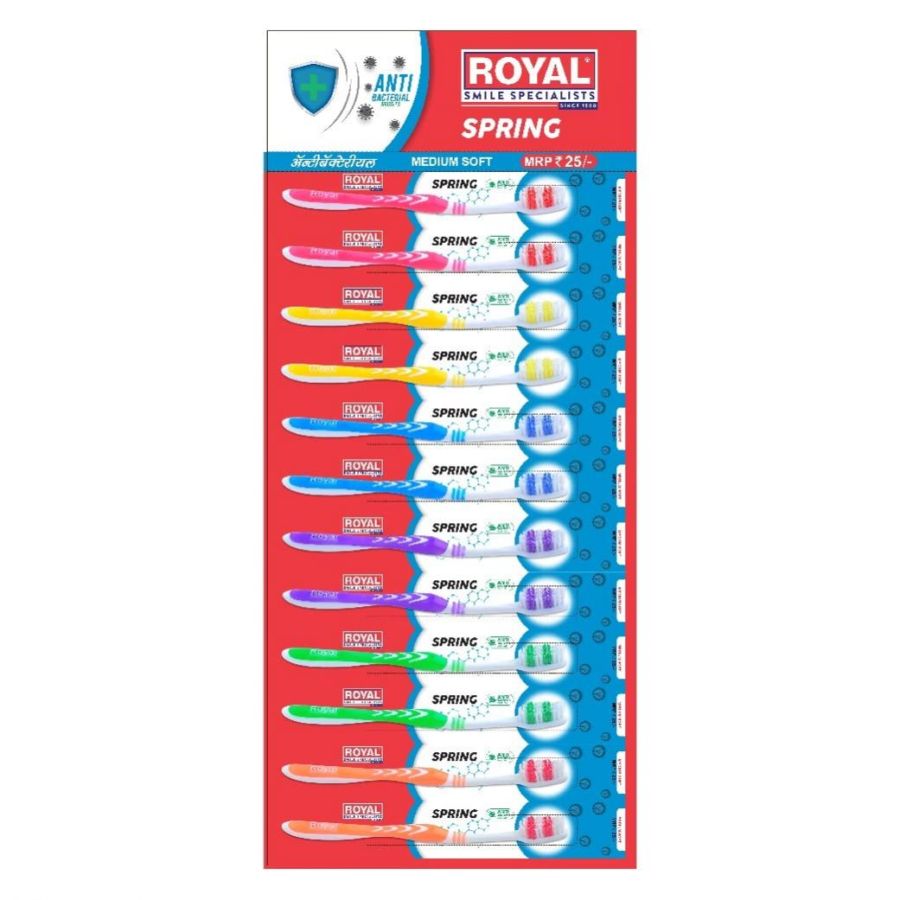Smile Specialist Spring White Toothbrush With Medium Soft Bristles | Antibacterial with Compact Brush Head for Deep and Complete Oral Care (Pack of 12)