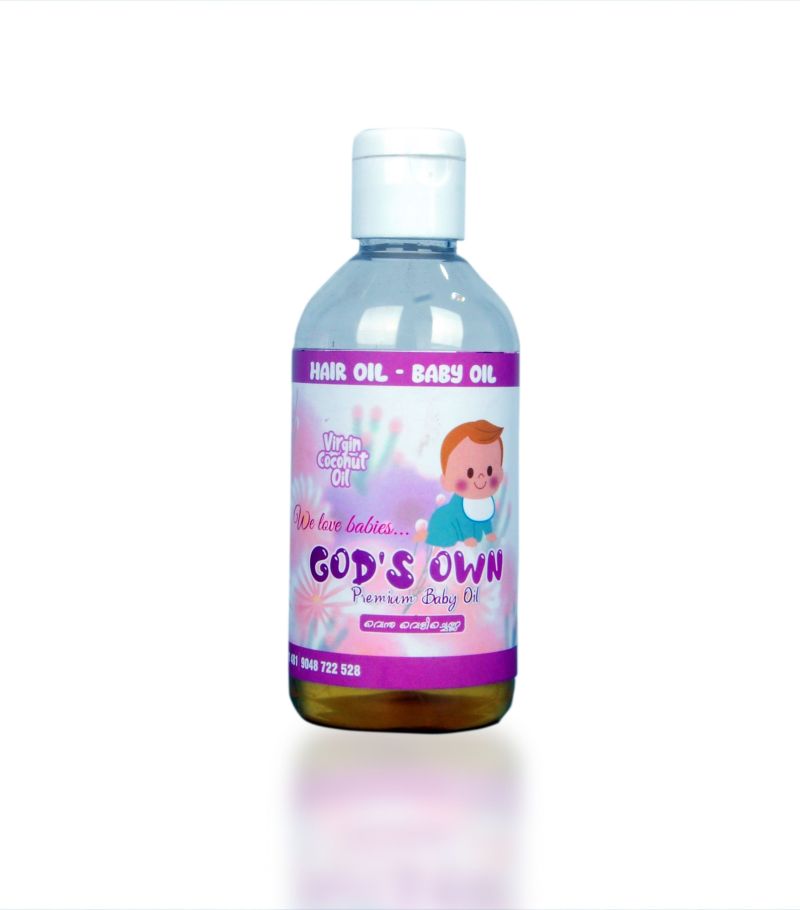 The first thing to consider when choosing baby oil is whether it is pure and natural.God's Own Premium Baby oil is made by Pookad West Kudumbasree and Atholi Yuva Karshaka Koottayam with great care for the soft skin of babies without adding any chemicals In each bottle of God's own.0-5 years is an age that affects the growth and health of children.virgin Coconut oil also contains lauric acid, which is found in breast milk, so regular use of this oil has been scientifically proven to be effective against diaper rash, cardiovascular disease, eczema and hair growth in children.In addition, the fatty acids in it soften and brighten the baby's skin. This oil can be used by both mother and baby. This oil is very effective for hair loss during pregnancy and postpartum.The ancients used to put hot virgin coconut oil in the baby's mouth so there is no need to worry about the oil getting into the baby's mouth.