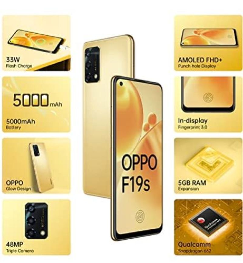 Oppo F19s (Gold) | 6GB RAM + 128GB ROM | 48MP+2MP+2MP Primary Camera | 16MP Selfie Camera | 5000 mah Battery | 6.43' inch Display